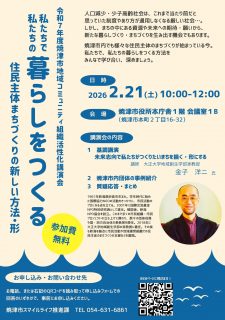 焼津市内でも住民主体のまちづくりが始まっている今。私たちで私たちの暮らしをつくる方法をみんなで学びあいましょう。